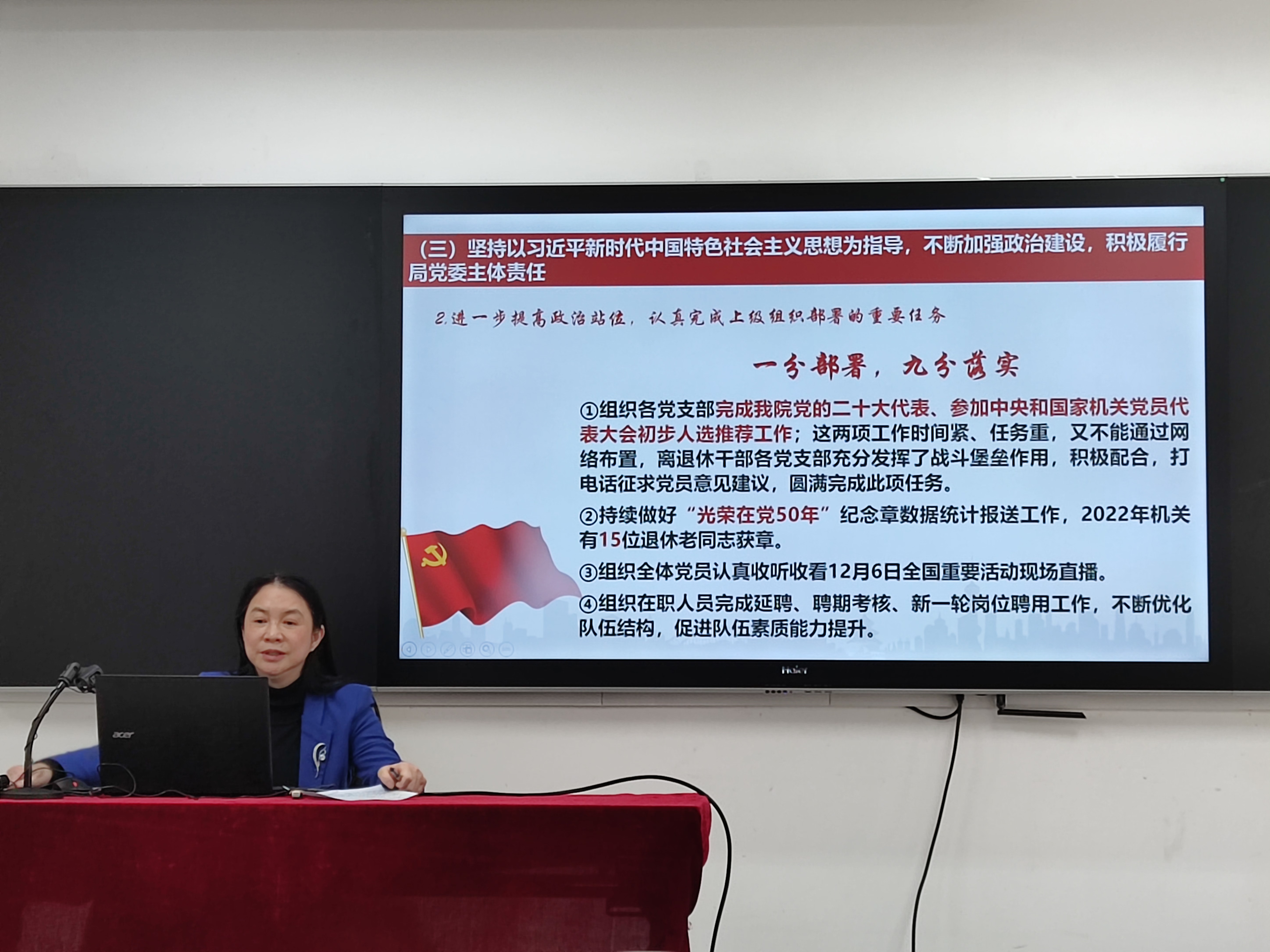 沈華書記系統(tǒng)總結(jié)回顧了2022年局黨委主要工作,指出了存在問題和改進(jìn)措施,提出了2023年工作設(shè)想,同時通報了院機(jī)關(guān)新一輪崗位聘用情況,并就過去一年支部骨干克服疫情影響和個人家庭、身體等原因,對支部工作開展和局黨委工作的大力支持表示衷心感謝。