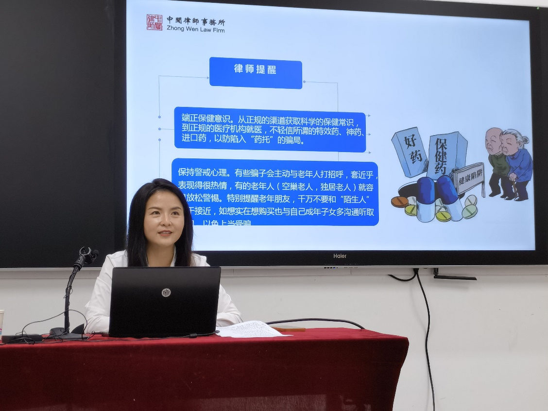 三是備課充分。兩位授課律師認(rèn)真?zhèn)湔n,專門設(shè)計(jì)制作了針對(duì)老年人的防詐騙課件,配以大量身邊發(fā)生的“涉老”典型案例進(jìn)行分析講解,結(jié)合老年人身心特點(diǎn)進(jìn)行釋法說(shuō)理,易于老年人理解掌握法律知識(shí)。