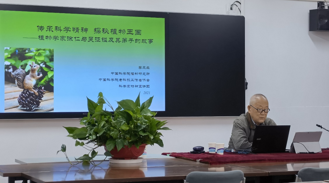 李承森老師是中國(guó)科學(xué)院植物所研究員、博士生導(dǎo)師、原常務(wù)副所長(zhǎng),他的講座主要講述著名植物學(xué)家吳征鎰院士、徐仁院士獻(xiàn)身中國(guó)植物學(xué)事業(yè)的科學(xué)貢獻(xiàn)和科學(xué)精神,以及作為學(xué)生的后輩們學(xué)習(xí)和傳承老一輩科學(xué)家精神的故事。