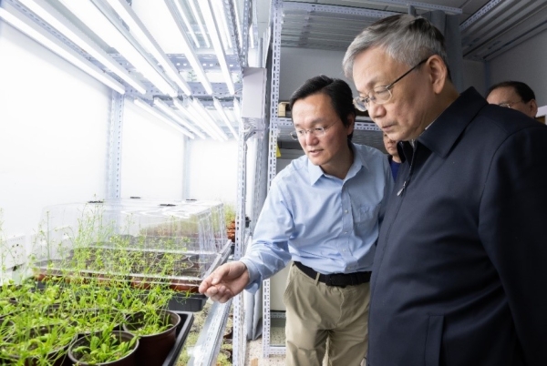 侯建國(guó)聽取生物物理研究所“人工葉綠體”青年團(tuán)隊(duì)負(fù)責(zé)人介紹科研進(jìn)展