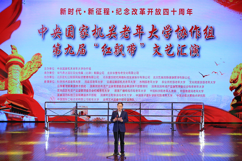 10月16日晚,由中國科學(xué)院離退休干部工作局作為協(xié)作組牽頭單位、以“新時代新征程紀(jì)念改革開放四十周年”為主題,中央國家機關(guān)老年大學(xué)協(xié)作組第九屆“紅飄帶”文藝匯演成功舉辦。中國科學(xué)院黨組副書記、副院長侯建國,中組部老干部局巡視員、副局長趙慶,中央和國家機關(guān)工委老干部活動中心副主任夏九燾,中國老年大學(xué)協(xié)會常務(wù)副會長刁海峰等,與中央國家機關(guān)部分單位離退休局負(fù)責(zé)人、離退休老同志代表700余人觀看演出,共慶佳節(jié)。