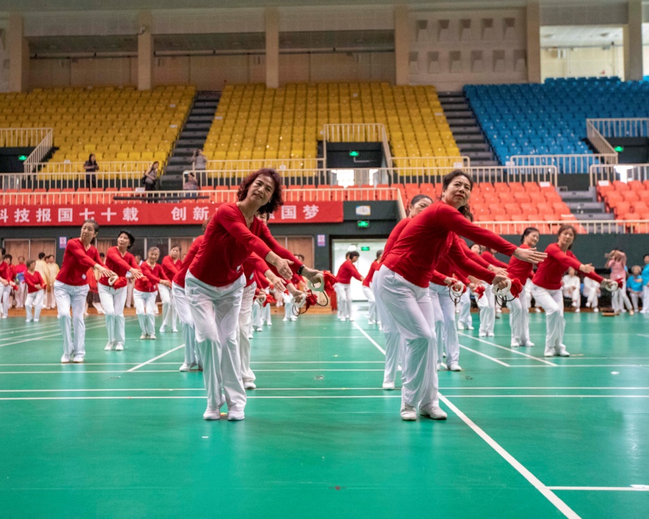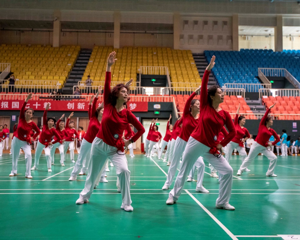 開(kāi)幕式上,運(yùn)動(dòng)員們表演展示了健身氣功八段錦、自編組合24式太極拳、柔力球、健身球操以及自編功夫太極扇。展演隊(duì)員身著整齊服裝,精神飽滿地步入場(chǎng)地。行云流水的健身氣功和太極拳、神采飛揚(yáng)的柔力球和健身球操、英姿颯爽的太極扇表演贏得了全場(chǎng)觀眾的熱烈掌聲,全場(chǎng)洋溢著熱烈、友愛(ài)、和諧的氣氛。