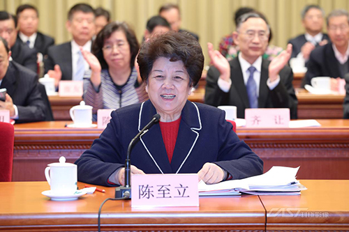 原國(guó)務(wù)委員、十一屆全國(guó)人大常委會(huì)副委員長(zhǎng)、中國(guó)老科協(xié)會(huì)長(zhǎng)陳至立主持會(huì)議并講話