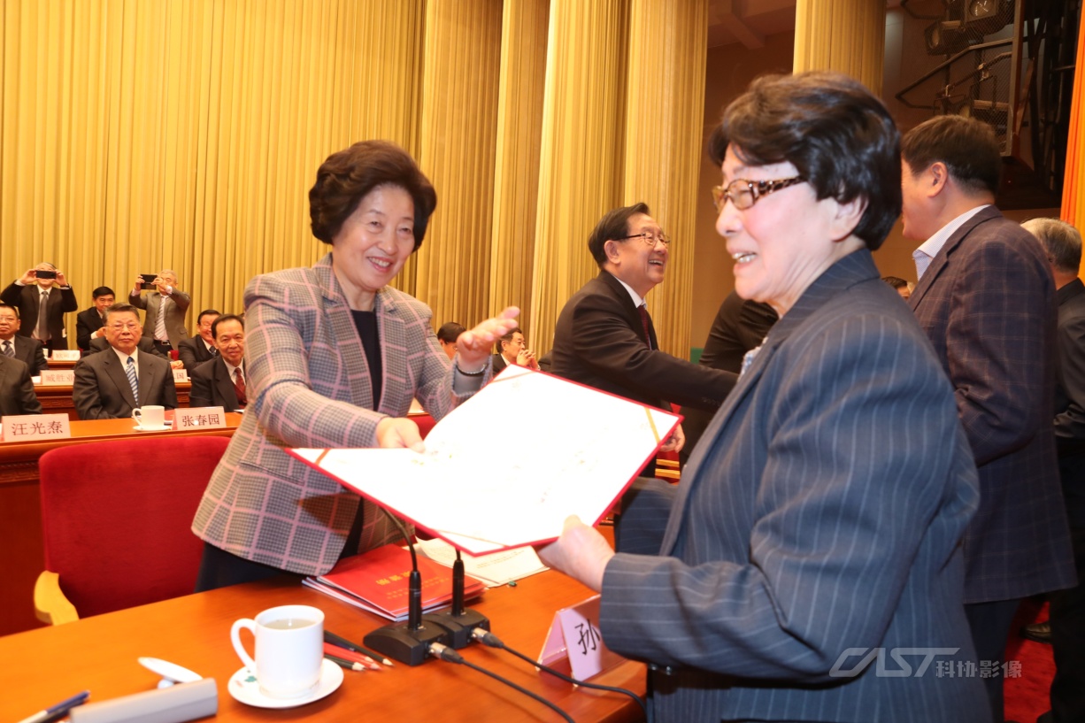 中共中央政治局委員、國(guó)務(wù)院副總理孫春蘭為中國(guó)科學(xué)院老科協(xié)張志林頒獎(jiǎng)