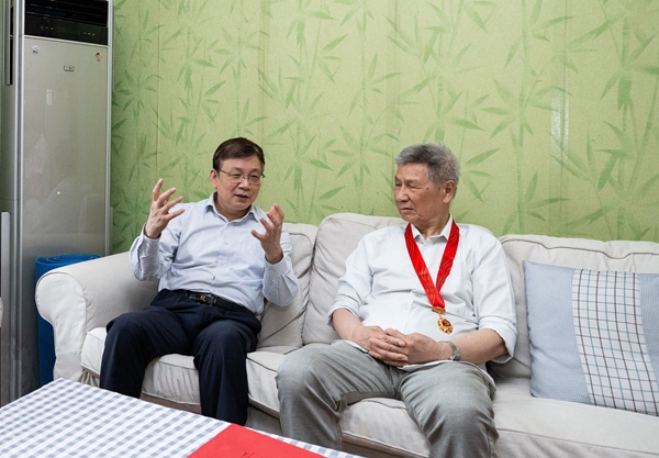 侯建國(guó)一行先后走訪慰問(wèn)了中國(guó)工程院院士、中國(guó)科學(xué)院原副院長(zhǎng)胡啟恒同志和中國(guó)科學(xué)院院士、大氣物理研究所原所長(zhǎng)、國(guó)家最高科學(xué)技術(shù)獎(jiǎng)獲得者曾慶存同志。侯建國(guó)為他們頒發(fā)并佩戴“光榮在黨50年”紀(jì)念章,詳細(xì)詢問(wèn)了他們的日常生活、身體情況,向他們?yōu)辄h和國(guó)家科技事業(yè)、為中國(guó)科學(xué)院改革創(chuàng)新發(fā)展作出的積極貢獻(xiàn)致以崇高敬意和衷心感謝。胡啟恒、曾慶存與侯建國(guó)圍繞推動(dòng)科技創(chuàng)新、院所改革發(fā)展等話題進(jìn)行了親切交流。侯建國(guó)表示,老黨員、老干部是黨、國(guó)家和中國(guó)科學(xué)院科技事業(yè)的寶貴財(cái)富,希望老同志們保重身體,相關(guān)部門(mén)要用心用情關(guān)心老黨員、老干部的日常生活,政治上更加關(guān)心、生活上更加關(guān)懷、情感上更加貼近,讓他們切實(shí)感受到黨組織的關(guān)懷和溫暖。