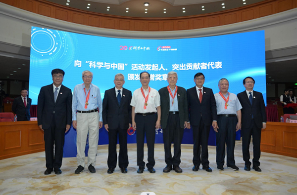 會(huì)上,“科學(xué)與中國”組委會(huì)主任、中國科學(xué)院院士楊玉良宣讀了《“千名院士·千場(chǎng)科普”倡議書》,號(hào)召兩院院士進(jìn)一步發(fā)揮“四個(gè)表率”作用,以每年千名以上兩院院士參與千場(chǎng)以上科普活動(dòng)為目標(biāo),勇?lián)聲r(shí)代使命、樹立大科普理念、堅(jiān)持人民需求導(dǎo)向、講好中國創(chuàng)新故事,做國家科普事業(yè)的引領(lǐng)者、社會(huì)精神文明的創(chuàng)建者、高質(zhì)量科普的示范者和國際交流合作的帶動(dòng)者,吸引更多科技工作者支持和參與科普事業(yè)。大會(huì)向“科學(xué)與中國”活動(dòng)發(fā)起人代表韓啟德、趙忠賢、許智宏、沈保根,以及突出貢獻(xiàn)者代表歐陽自遠(yuǎn)、金涌、郭光燦、葉培建頒發(fā)了榮譽(yù)獎(jiǎng)?wù)隆?/p>