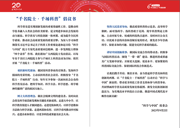 “科學(xué)與中國”組委會(huì)向全體兩院院士發(fā)出倡議