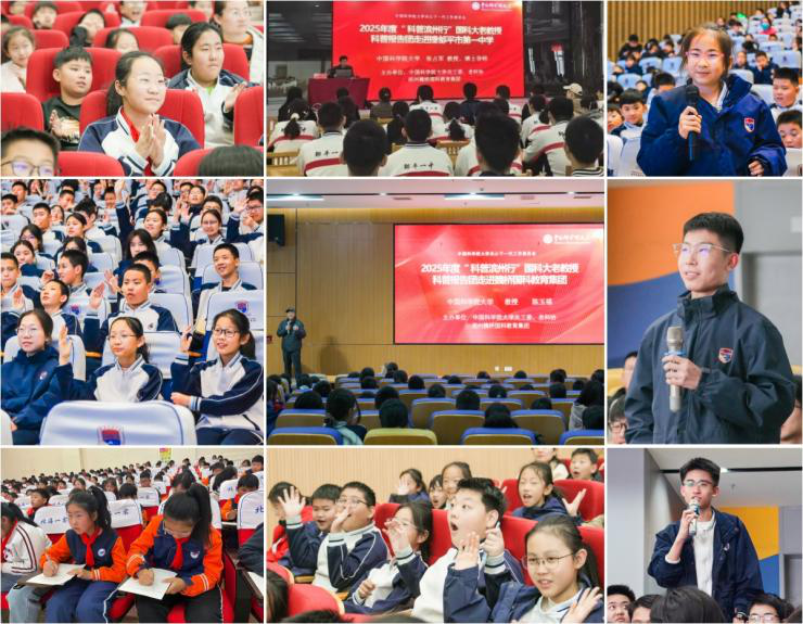 王大明教授為同學(xué)們講述《“從牛到愛”——中國核物理學(xué)家錢三強(qiáng)的故事》,以科學(xué)精神、家國情懷浸潤青少年心靈;陳玉福教授將數(shù)學(xué)發(fā)展歷程、數(shù)學(xué)思維養(yǎng)成和學(xué)習(xí)技巧點(diǎn)撥有機(jī)結(jié)合,為師生闡釋如何《認(rèn)識(shí)數(shù)學(xué)、學(xué)好數(shù)學(xué)暨教好數(shù)學(xué)》;張占軍教授《電化學(xué)與現(xiàn)代生活》將學(xué)科知識(shí)與生活知識(shí)碰撞出火花;張建方教授《科技自主創(chuàng)新和卡脖子技術(shù)》激勵(lì)同學(xué)們立志搶占科學(xué)高峰;李大光教授通過《我們只有一個(gè)地球》引導(dǎo)學(xué)生思考地球資源利用和科學(xué)保護(hù)環(huán)境的微妙平衡;方曉陽教授介紹《中國墨的技藝與文化》鼓勵(lì)學(xué)生們賡續(xù)中華文脈,堅(jiān)定文化自信;彭工教授將英語歌曲、動(dòng)畫貫穿講解,讓小學(xué)生們體會(huì)《寓教于樂學(xué)英語》的魅力;王利剛副研究員《發(fā)現(xiàn)你內(nèi)心的力量——焦點(diǎn)在“解”,向“好”而行》為高中學(xué)子剖析心理發(fā)展特點(diǎn),提供科學(xué)的心智成長指引。講座中師生互動(dòng)頻頻,講座結(jié)束后學(xué)生們意猶未盡,爭相請(qǐng)教授簽名合影,激起校園內(nèi)追科學(xué)家之星的熱潮。